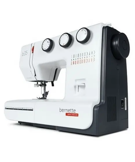 A Bernette B35 é uma máquina de costura mecânica, sem memória computadorizada. Pelos 3 botões é possível ajustar a largura, comprimento e tipo do ponto. Também é possível ajustar a tensão da linha facilmente através da manivela. A Bernette B35 também dispõe de um processo de caseado de botão automatizado, de 1 passo, que pode ser facilmente executado. Com um total de 23 pontos, tanto utilitários como decorativos, você pode colocar suas ideias criativas em prática de forma simples e rápida e com uma boa qualidade de ponto.